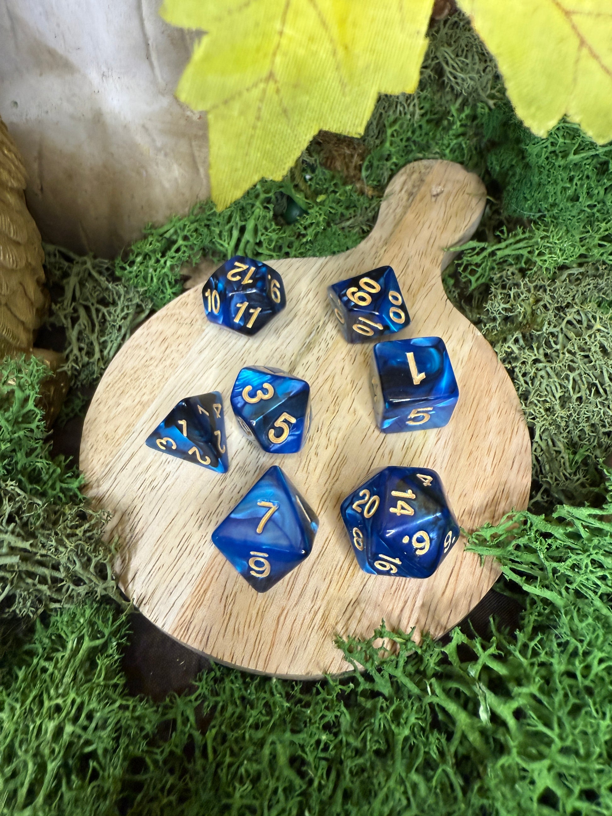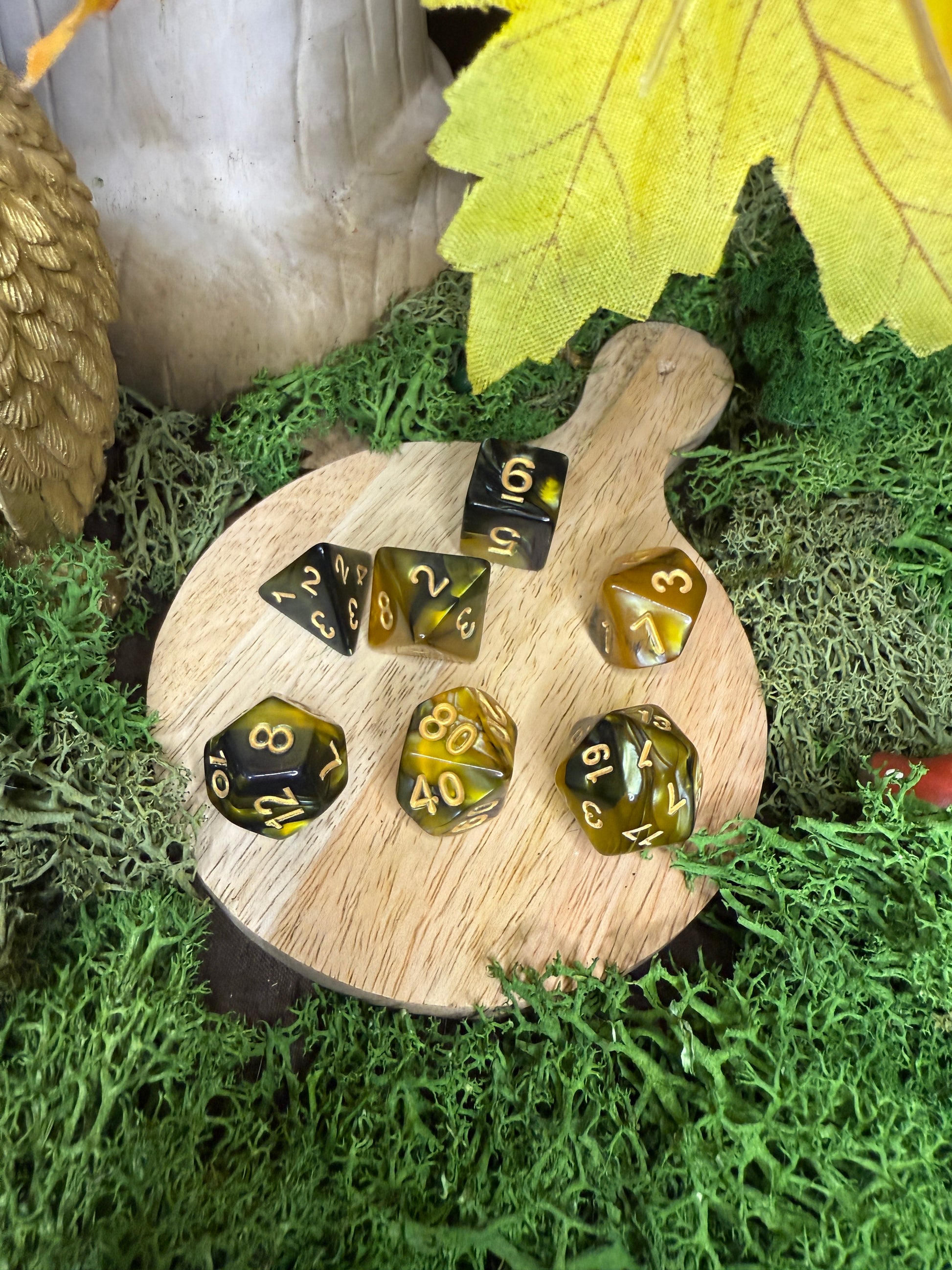 Set de 7 dés à effets bicolore, utilisés principalement dans le jeu de rôle.